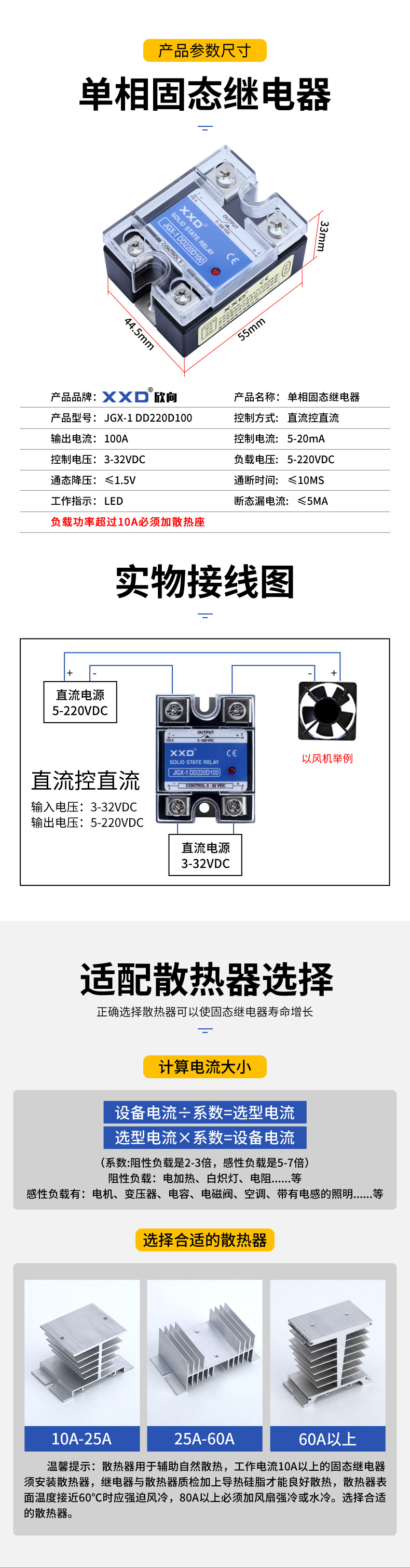 XXD Single phase DC control DC Solid state relay SSR-100DD