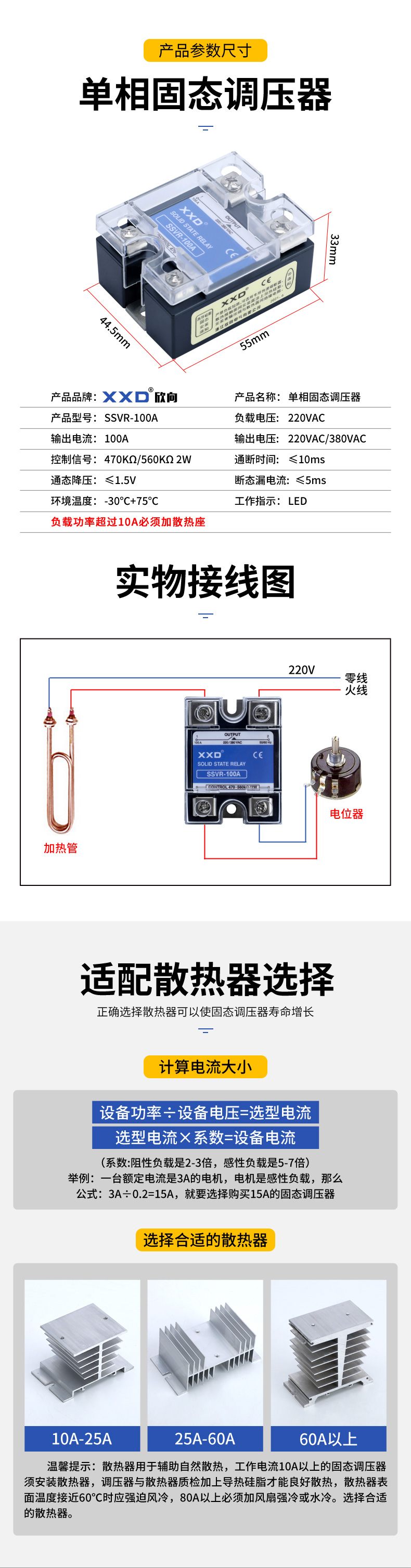 XXD Single phase Solid state module SSR-100VA Resistance Regulator